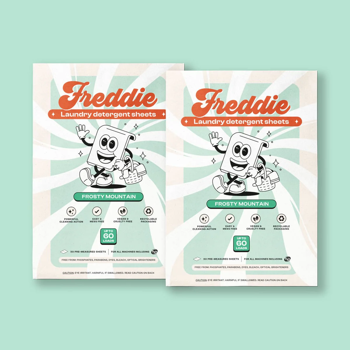 Small sheet, big clean. Forget bulky plastic jugs, spilling liquid and messy powders. Our revolutionary Laundry Detergent Sheets come in a compact eco-friendly box, are pre-measured for each load and are fully dissolvable in hot and cold water. Whether you need to freshen up your favorite t-shirt or tackle a load of smelly gym clothes, Freddie is there to work its magic. It's washing made fun, easy & sustainable.